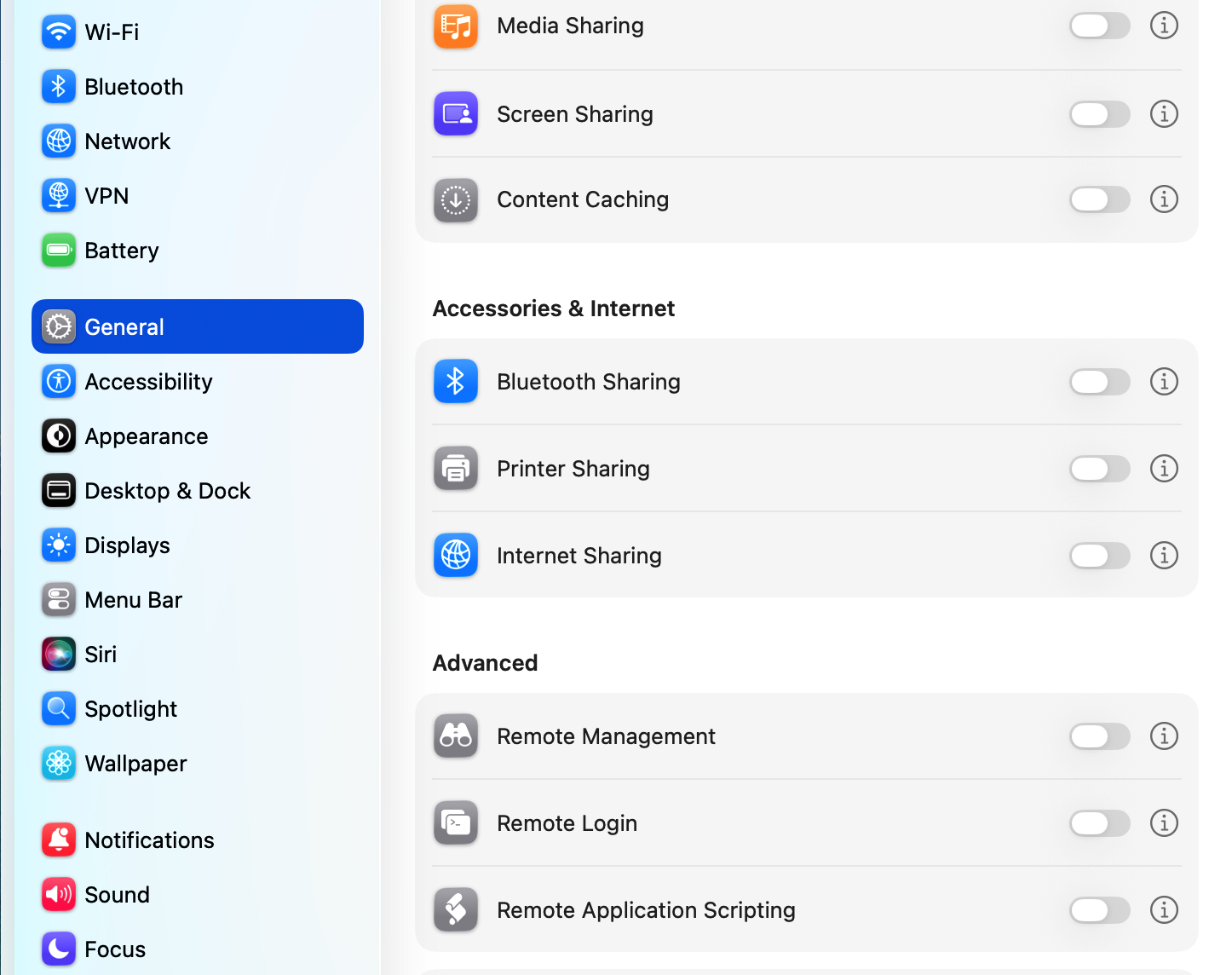 系统设置 → 通用 → 共享 → 远程登录 → 关闭
